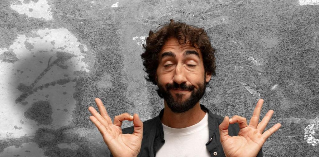 Zehn Schritte langsamer als üblich, Gewicht verlagern, Boden fühlen. Mit jedem Ausatmen lassen Sie ein Prozent Anspannung gehen. Diese Mini-Auszeit rettet Meetings und hebt die Laune erstaunlich zuverlässig.
